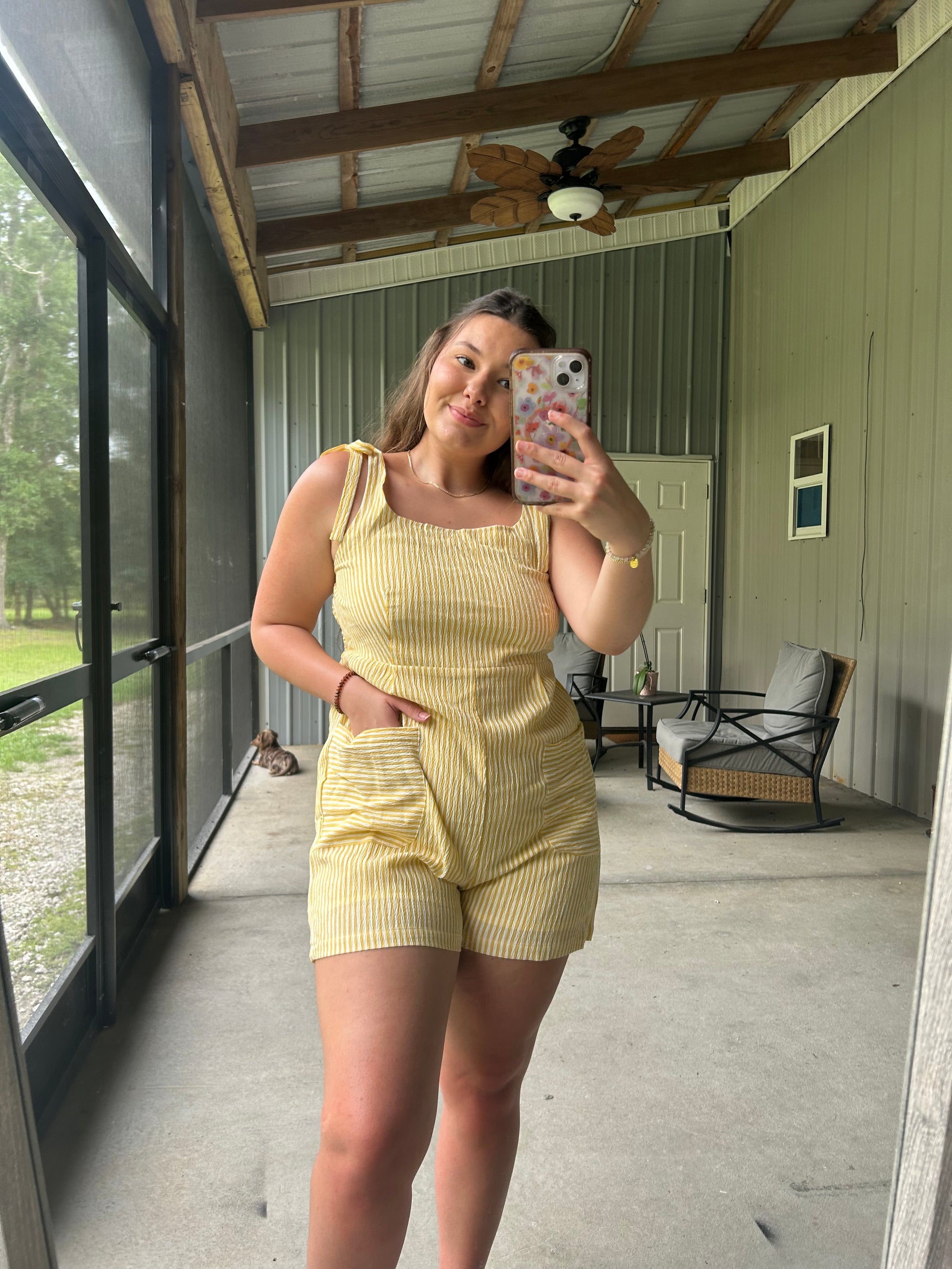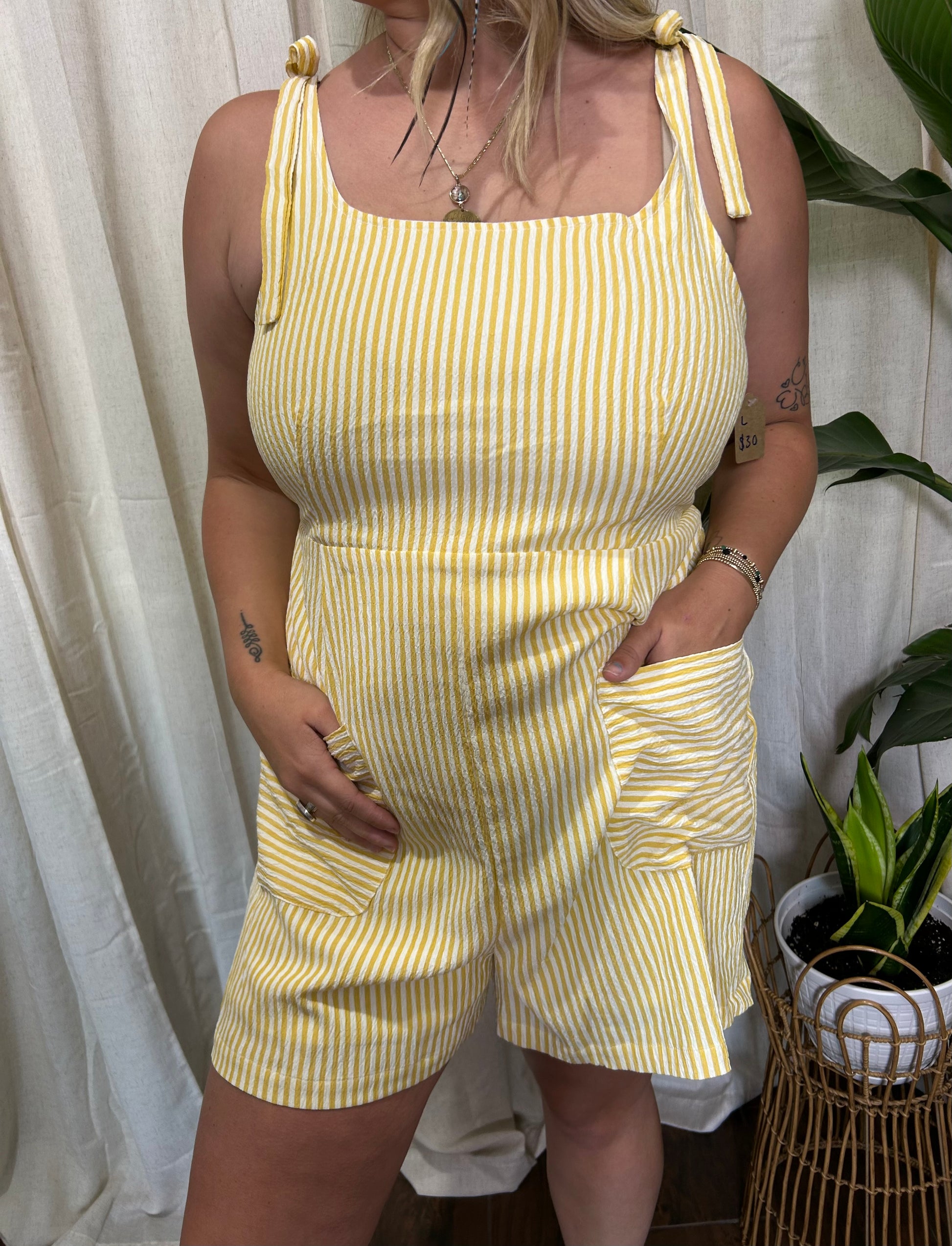 🌞Step into summer with this vibrant yellow romper that